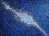 This work depicts the Seven Sisters (Pleiades) story passed to Gabriella through her family. At Twenty Mile near Napperby Creek, the sisters flee Wati-Nyiru, escaping into the sky to become the Pleiades, while he becomes Orion, forever chasing them. The seven concentric circles represent the Sisters, and the lone star depicts Orion against the Milky Way.