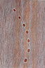 "These paintings are about the Maranoa River and the land of my people, Gunggari country. The river flows through places like the Yumba, an old shantytown near Mitchell where my Nana was born and later laid to rest. For Gunggari people, the Yumba is important. It is a place full of connection and meaning, tied to our families and history.