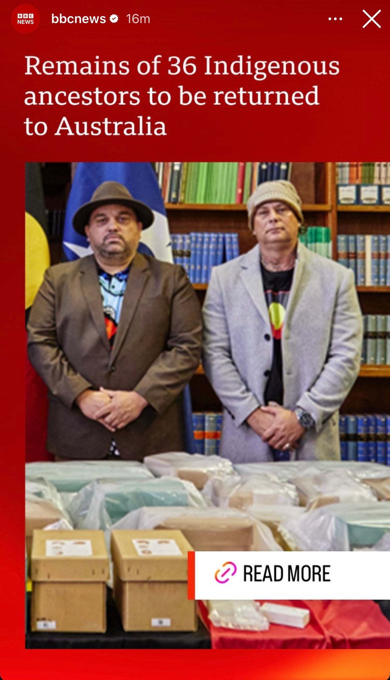 Coe Gallery was honoured to attend and support the repatriation ceremony at London’s Natural History Museum, where 36 First Nations Ancestors began their journey home. Six Ancestors were welcomed home on behalf of the Woppaburra, Warrgamay, Wuthathi and Yadhaighana Peoples in Queensland. The remaining 30 Ancestors are being cared for by the Australian Government while their Traditional Custodians are identified and cultural protocols for return to Country are followed. This fourth repatriation from the Museum followed detailed archival research and was acknowledged by community representatives as a vital step in truth-telling, healing, and the reaffirmation of sovereignty. To date, 1,775 First Nations Ancestors have been repatriated to Australia, including more than 200 from the Natural History Museum - with further UK returns under discussion.