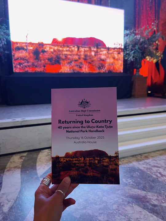 Coe Gallery joined Aṉangu Traditional Owners at Australia House, London, on Thursday 16 October to mark 40 years since the Uluṟu–Kata Tjuṯa Handback. In the presence of King Charles III and hosted by the Australian High Commission, the commemoration honoured the 26 October 1985 return of title to Aṉangu - an enduring milestone in Aboriginal land rights. The Ceremony included the Land Rights song in language and an Inma (traditional dance), creating a powerful atmosphere of respect and continuity. Prime Minister Anthony Albanese described the anniversary as “a milestone in Aboriginal land rights in Australia,” while Board Chair Tapaya Edwards reflected on the ongoing work to care for Country and keep Tjukurpa strong for future generations. We were honoured to reconnect with Aunty Alison Milyika Carroll and to reflect on our own family’s memories of attending the 1985 Handback. With deep respect, we congratulate Aṉangu on this historic anniversary.